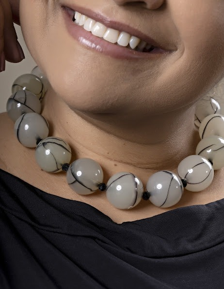 O Colar Brisa Elegante apresenta esferas em tom neutro com acabamento delicado, criando uma composição leve e sofisticada. Uma peça que transmite suavidade e elegância, perfeita para complementar produções com um toque moderno e feminino.