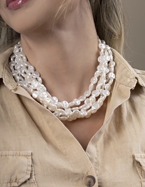 Colar com múltiplas pérolas, trazendo sofisticação clássica e presença.